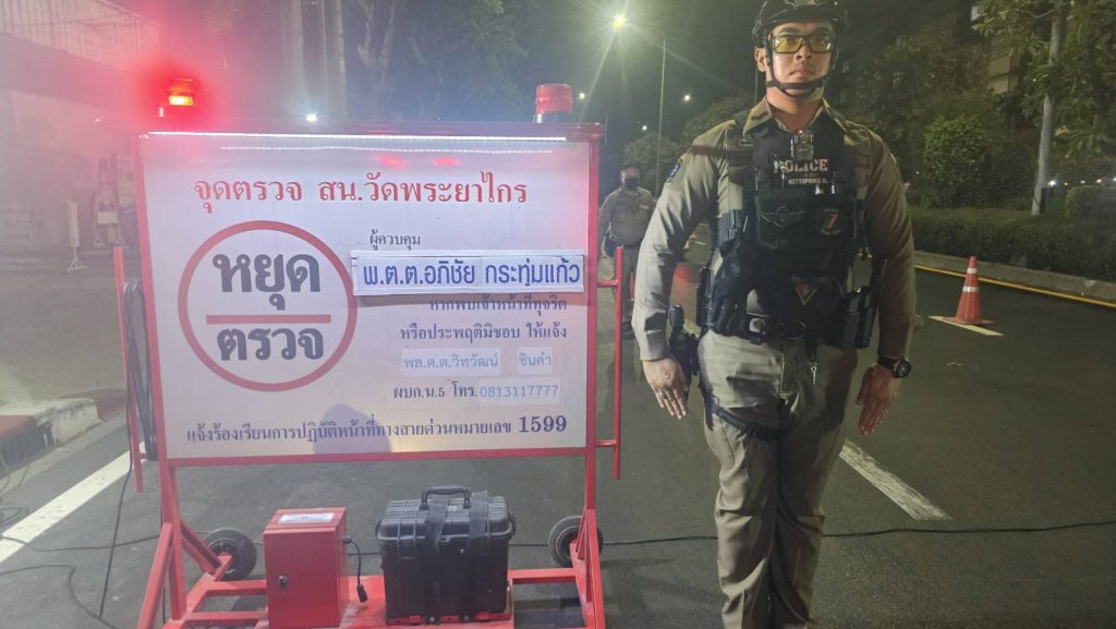 ตั้งจุด ว.43 ป้องกันอาชญากรรมและกวดขันวินัยจราจรฯ บริเวณหน้าร้านลีเหล่าหงี ถ.เจริญราษฎ์ ตั้งแต่เวลา 00.01-02.00น. กำชับการปฏิบัติหน้าที่ การตั้งจุดตรวจตามคำสั่งผู้บังคับบัญชาโดยเคร่งครัด และเน้นย้ำให้ใช้กิริยาวาจาที่สุภาพเรียบร้อย เหมาะสมต่อประชาชน