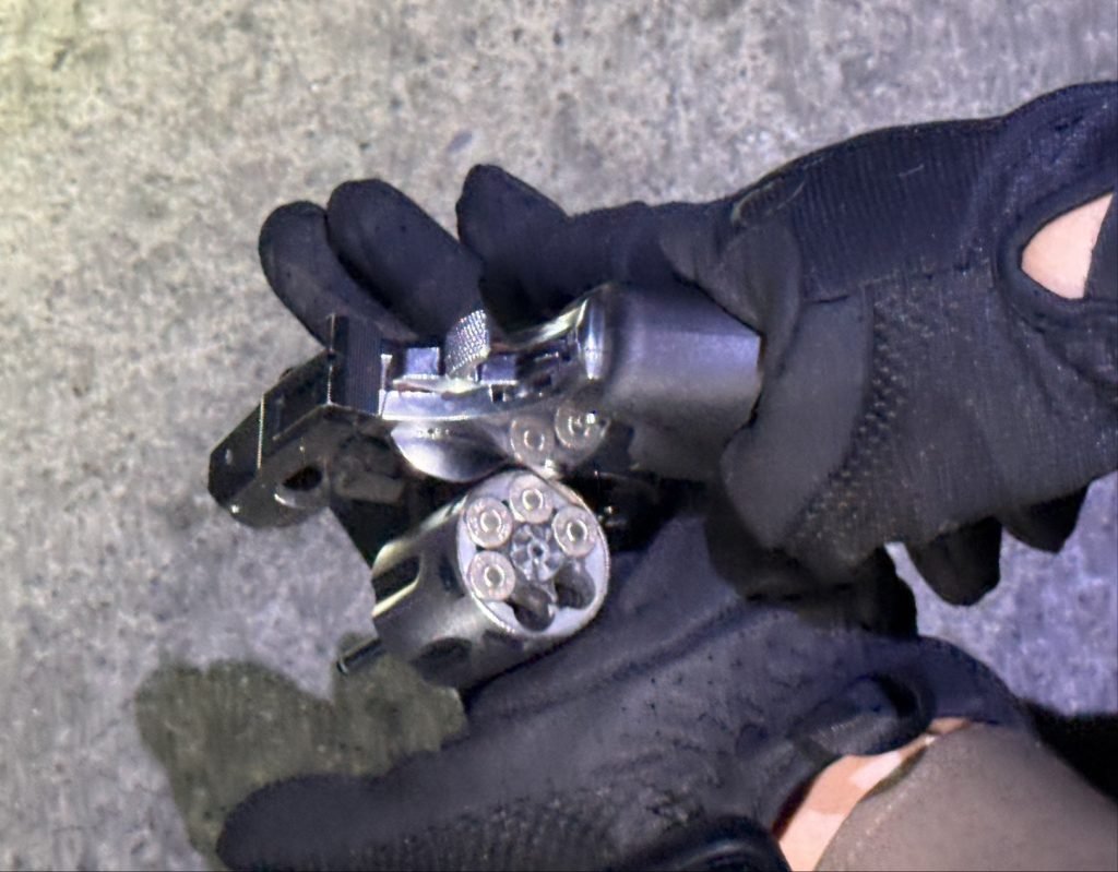 ผลการตรวจพบอาวุธปืนไทยประดิษฐ์ชนิดลูกโม่ ความยาวลำกล้องยาว 2.5 เซนติเมตร จำนวน 1 กระบอก วางอยู่บริเวณแผงหน้าปัดเรือนไมล์รถจักยานยนต์คันที่ผู้ถูกจับกุมขับขี่อยู่ขณะตรวจค้น-จับกุม, เครื่องกระสุนปืน ขนาด .38 special จำนวน 4 นัด บรรจุอยู่ภายในลูกโม่ และพบปลอกกระสุนปืน ขนาด .38 special จำนวน 4 นัด บรรจุอยู่ในถุงพลาสติกใสแบบกดปิด-ดึงเปิด วางไว้อยู่บริเวณชั้นวางรองเท้าภายในบ้านของผู้ถูกจับกุม(เป็นเพิงพักไม่มีบ้านเลขที่ภายในชุมชน)
