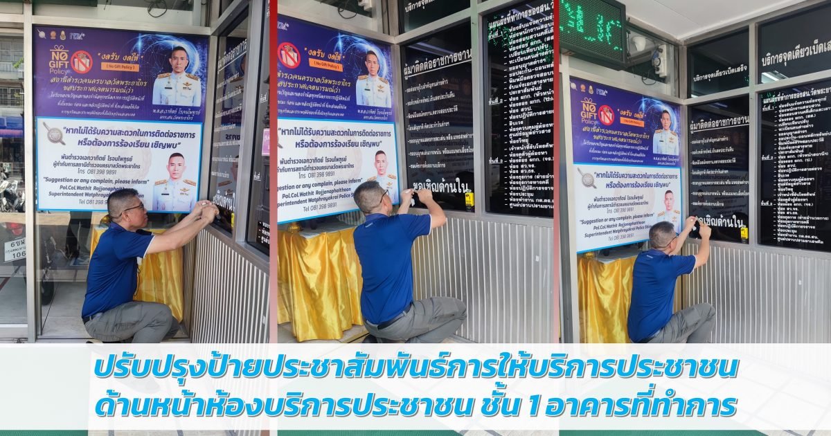 ปรับปรุงป้ายประชาสัมพันธ์การให้บริการประชาชน ด้านหน้าห้องบริการประชาชน ชั้น 1 อาคารที่ทำการ