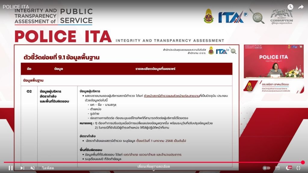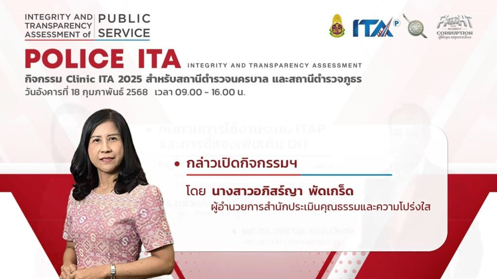 ป.ป.ช. เดินหน้าจัด Clinic Police ITA เน้นย้ำความเสี่ยงต่อการรับสินบน และการเปิดเผยข้อมูลผลการปฏิบัติงานในเชิงพื้นที่ของตำรวจแต่ละสายงาน