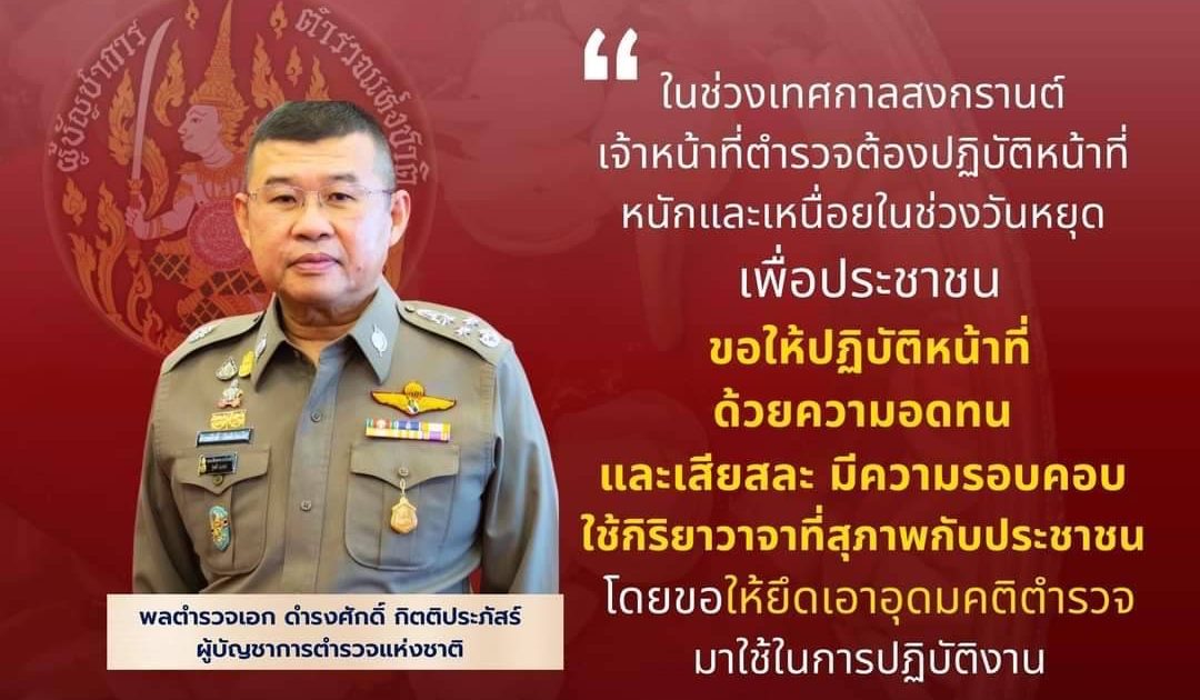 ผบ.ตร.กำชับตำรวจทั่วประเทศ สงกรานต์นี้ดูแลบริการประชาชน ด้วยอุดมคติตำรวจ