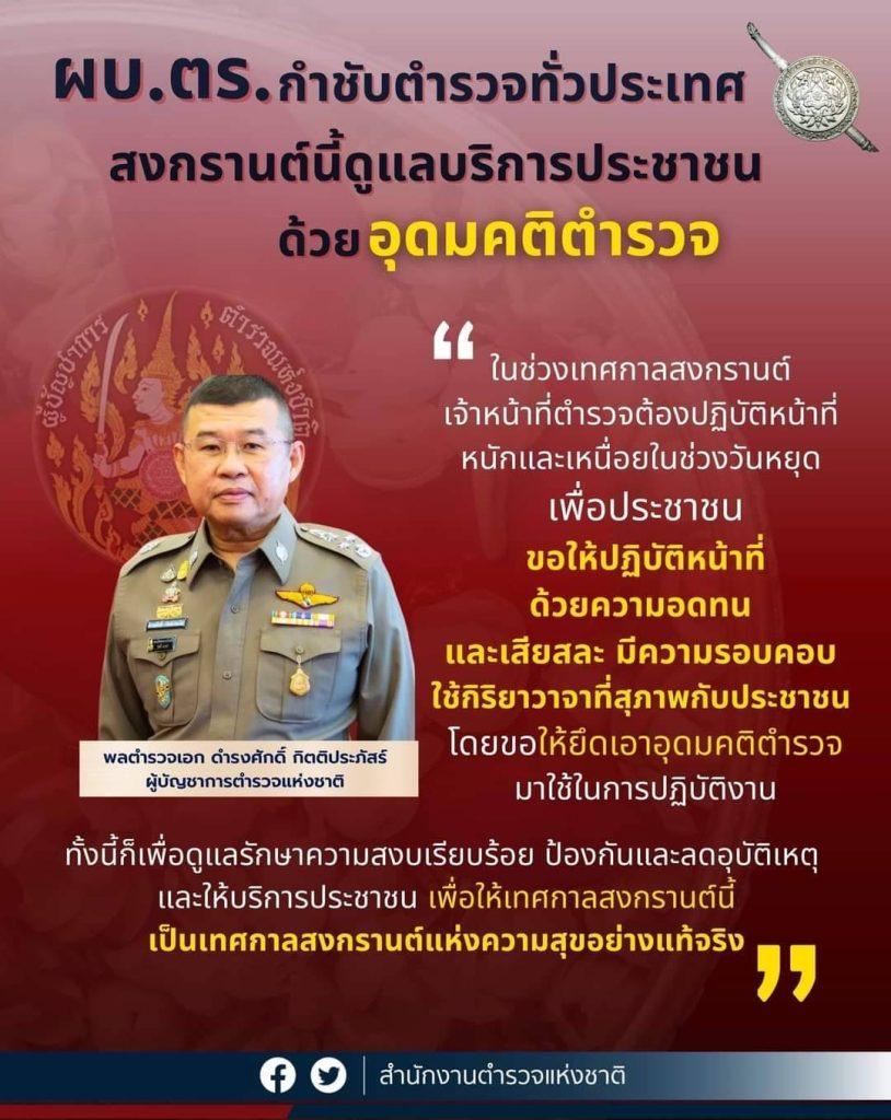 ผบ.ตร.กำชับตำรวจทั่วประเทศ สงกรานต์นี้ดูแลบริการประชาชน ด้วยอุดมคติตำรวจ