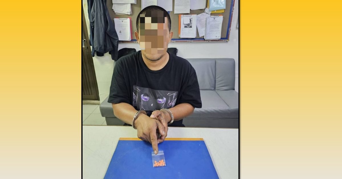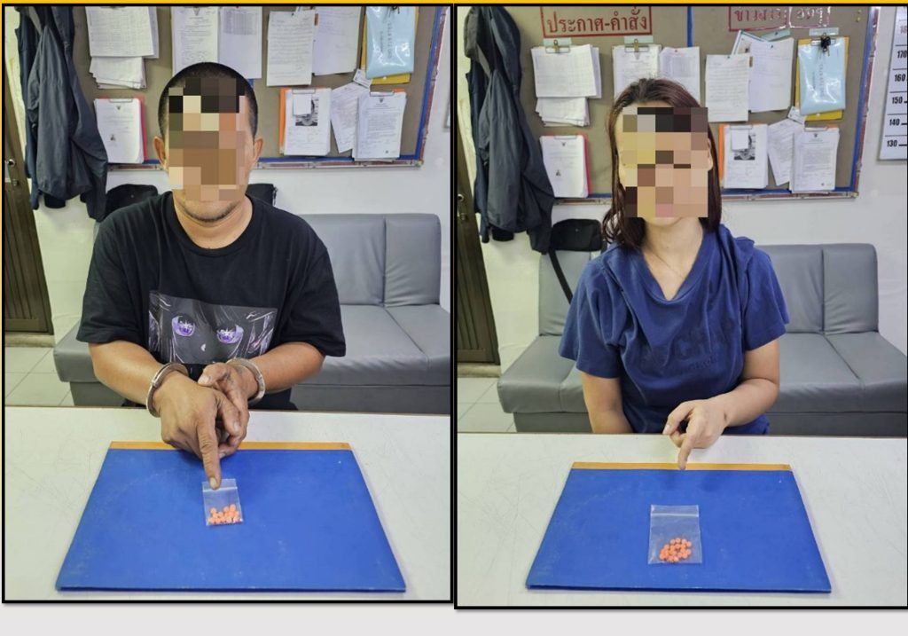 พร้อมด้วยของกลาง ยาเสพติดให้โทษประเภทที่ 1 (เมทแอมเฟตามีนหรือยาบ้า) ชนิดเม็ดกลมแบน สีส้ม ประทับตัวอักษร WY จำนวน 15 เม็ด