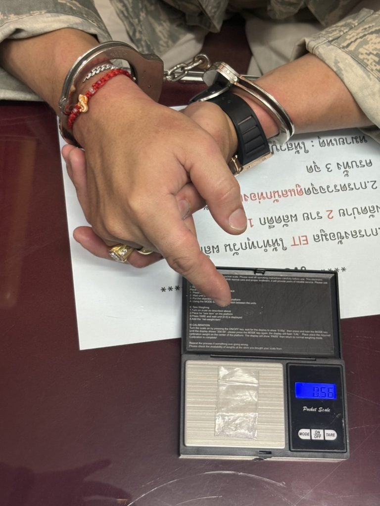 -1.ยาเสพติดให้โทษประเภท 1 (เมทแอมเฟตามีนหรือยาไอซ์) ใส่ถุงพลาสติกใสแบบกดปิด น้ำหนักชั่งไม่รวมถุง 0.32 กรัม