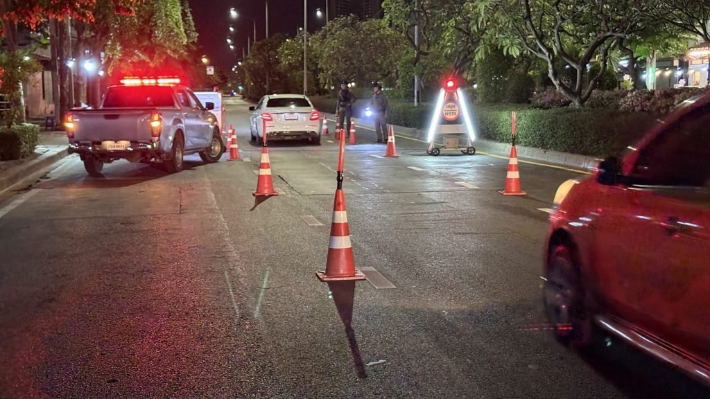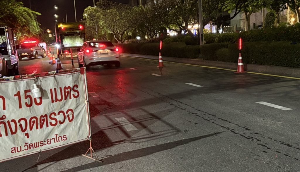 ฝ่ายป้องกันปราบปราม ตั้งงจุดตรวจ ป้องกันอาชญากรรมฯ บริเวณ ร้านอาหาร หลี เหลา หงี่ ถ.เจริญราษฎร์ ตั้งแต่เวลา 00.01-02.00 น.