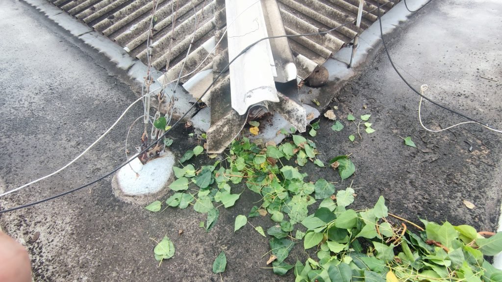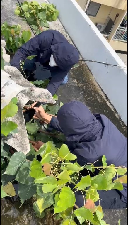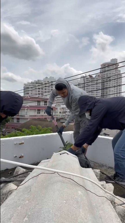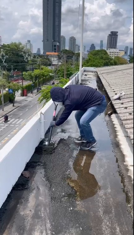 ฝ่ายอำนวยการ สน.วัดพระยาไกร ดำเนินการกำจัดวัชพืช และทาน้ำยากันซึม บนหลังคาอาคารที่ทำการ