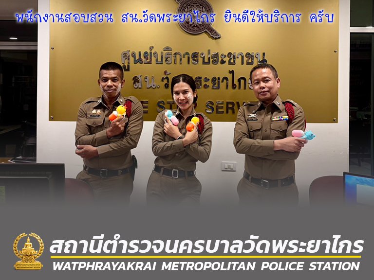 วันที่ 14 เมษายน 2569 ตั้งแต่เวลา 14.01-22.00 น. พนักงานสอบสวน สน.วัดพระยาไกร ปฏิบัติหน้าที่ให้บริการประชนชน ดังนี้