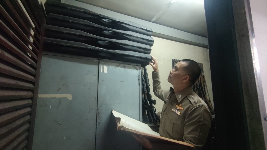 พ.ต.อ.วาทิตย์ โรจนไพฑูรย์ ผกก.สน. วัดพระยาไกร พร้อม พ.ต.ต.ณวฤทธิ์ แสงตา สว.อก.สน.วัดพระยาไกร พร้อมเจ้าหน้าที่พัสดุ ร่วมกันตรวจอาวุธปืนและเครื่องกระสุนปืน สถานที่เก็บ ทรัพย์สินของราชการ 22 พฤศจิกายน 2024 โดย admin / ไม่มีหมวดหมู่ วันที่ 22 พ.ย.2567 เวลา 13.30 น. พ.ต.อ.วาทิตย์ โรจนไพฑูรย์ ผกก.สน. วัดพระยาไกร พร้อม พ.ต.ต.ณวฤทธิ์ แสงตา สว.อก.สน.วัดพระยาไกร พร้อมเจ้าหน้าที่พัสดุ ร่วมกันตรวจอาวุธปืนและเครื่องกระสุนปืน สถานที่เก็บ ทรัพย์สินของราชการ อาวุธปืน มีความมั่นคงแข็งแรง และปลอดภัย เพื่อกำกับ ดูแลรักษา ตรวจนับ ตรวจสอบสภาพการใช้งานทรัพย์สินของราชการอาวุุธปืน ที่มีความเสี่ยงต่อการนำไปใช้โดยมิชอบ และ ให้ความรู้ความเข้าใจในการเบิกใช้อาวุธปืนของทางราชการ ณ ห้องประชุมชั้น 3 สน.วัดพระยาไกร