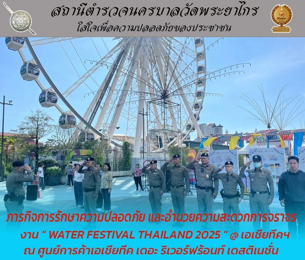 อบรมปล่อยแถวฯ ชี้แจงภารกิจแก่ ข้าราชการตำรวจ สน.วัดพระยาไกร, จนท.กก.ดส., จนท.บก.สปพ., เจ้าหน้าที่รักษาความปลอดภัย และเจ้าหน้าที่ที่เกี่ยวข้อง ภารกิจการรักษาความปลอดภัย และอำนวยความสะดวกการจราจร การจัดงาน ” Water Festival Thailand 2025 ” @ เอเชียทีคฯ และในเขตพื้นที่รับผิดชอบ ณ ลานกิจกรรม โครงการเอเชียทีค เดอะ ริเวอร์ฟร้อนซ์ เดสติเนชั่น
