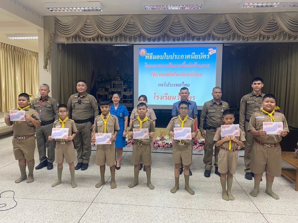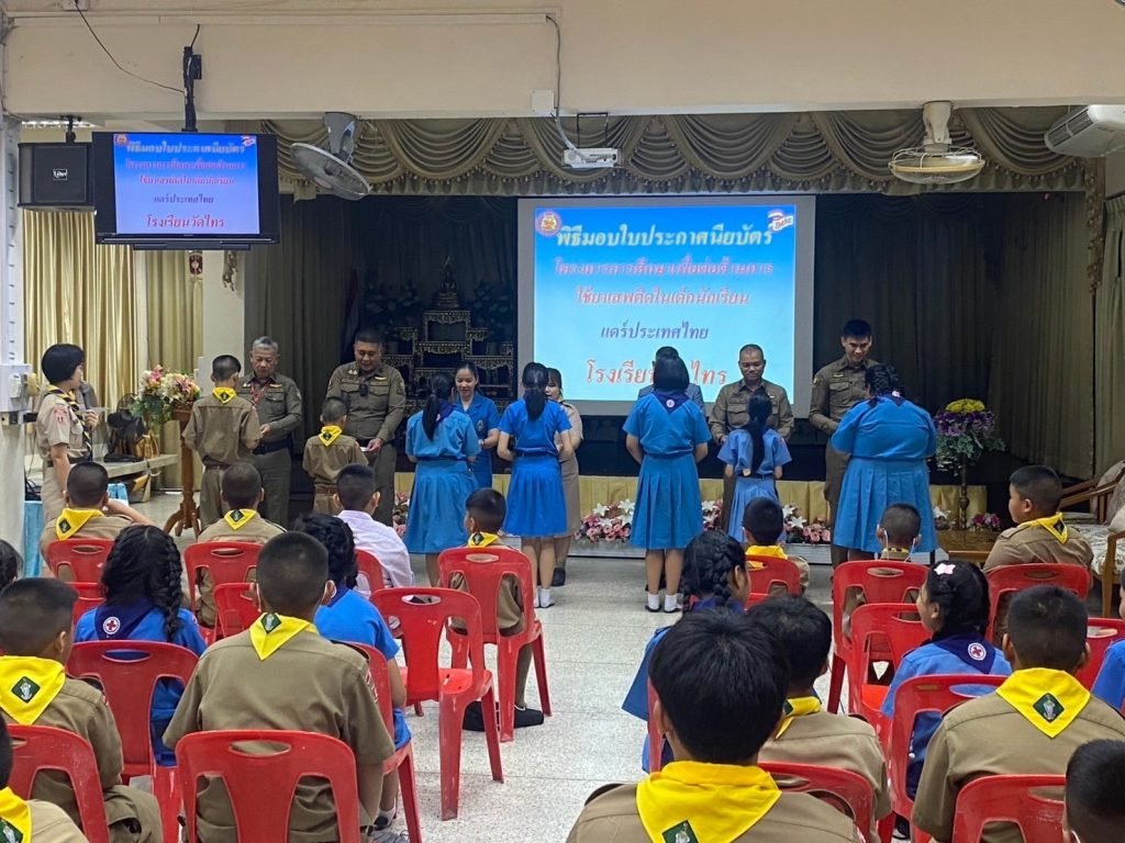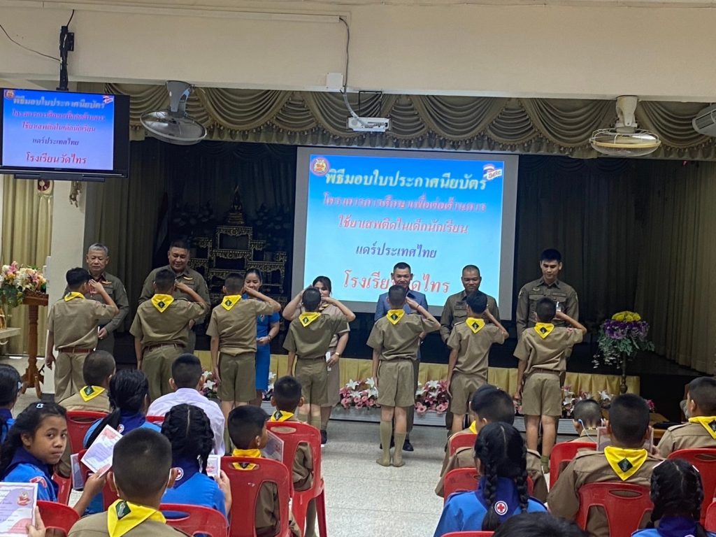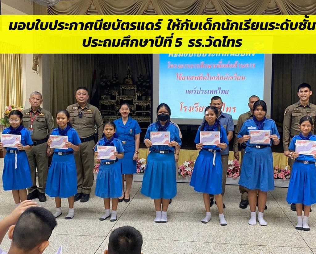 มอบใบประกาศนียบัตรแดร์ ให้กับเด็กนักเรียนระดับชั้นประถมศึกษาปีที่ 5 รร.วัดไทรตามโครงการ การศึกษาเพื่อต่อต้านการใช้ยาเสพติดในเด็กนักเรียน (D.A.R.E.)
