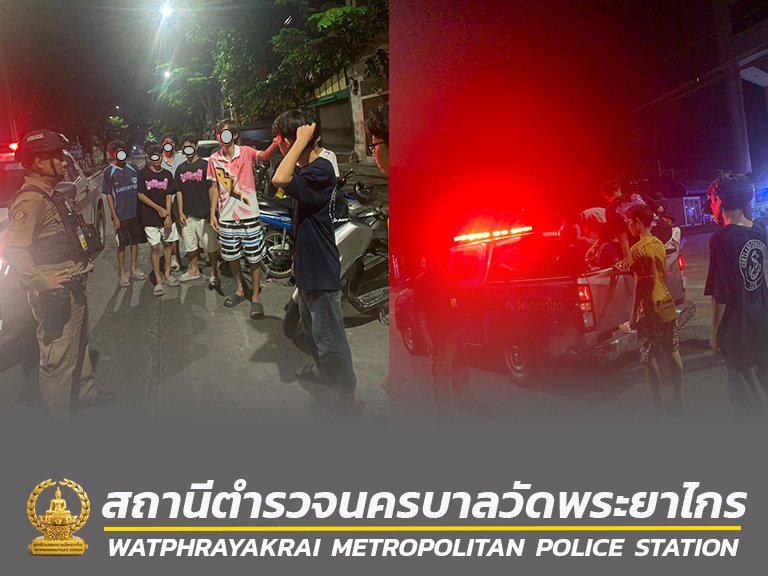 วันที่ 20 เมษายน 2569 เวลาประมาณ 03.00น. สายตรวจชุดปฏิบัติการที่ 1 นำโดย ร.ต.อ.ชัยวรรณ์ วั่นซ้วน (พระยา 2-0) รับแจ้งจากศูนย์วิทยุ 191 มีวัยรุ่นมั่วสุมจำนวนหลายคน บริเวณหน้าโรงพยาบาลเจริญกรุงประชารักษ์ จึงได้นำกำลังไปทำการตรวจสอบ พบวัยรุ่นจำนวนหลายคน 14 คน ได้เชิญวัยรุ่นทั้งหมดมาทำประวัติและติดต่อผู้ปกครองมาทำความเข้าใจและรับมอบตัวกลับบ้าน