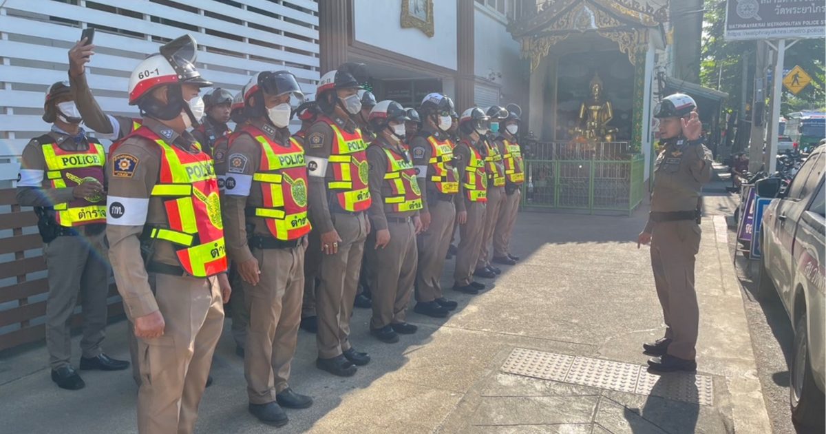 อบรมปล่อยแถวเจ้าหน้าที่ตำรวจจราจรชุดกวดขันวินัยจราจรบริเวณหน้า สน. วัดพระยาไกร ก่อนปฏิบัติหน้าที่เพื่อตรวจสอบความพร้อม