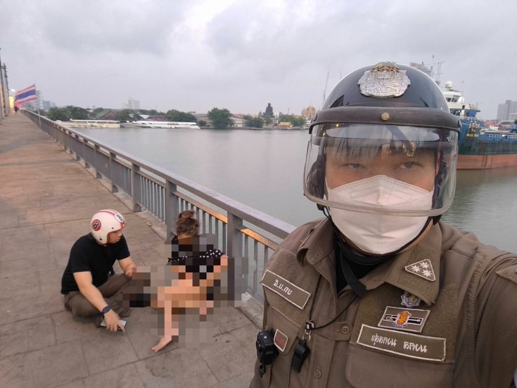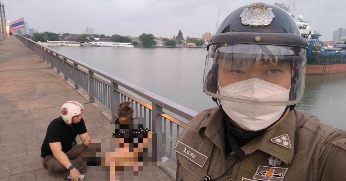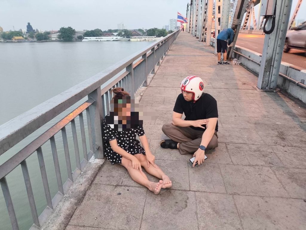 วันนี้ (9 เม.ย.69) เวลาประมาณ 06.10 น.ขณะที่ จ.ส.ต.บุริศร์ แก่นแก้ว ผบ.หมู่ จร.สน.วัดพระยาไกร ปฎิบัติหน้าที่จราจร ออกจากเวรปฎิบัติหน้าที่ ขณะกำลังเดินกลับที่พักอาศัย เมื่อมาถึงบริเวณกลางสะพานกรุงเทพ พบหญิงสาว(ทราบชื่อภายหลัง น.ส.ถนอมจิตร ฯ) กำลังปีนแผงเหล็กราวสะพานกรุงเทพ จะกระโดดจากสะพาน ลงแม่น้ำเจ้าพระยา จ.ส.ต.บุริศร์ฯ ได้พบเห็นจึงได้หยุดรถ และวิ่งเข้าไปทำการช่วยเหลือพร้อมด้วยพลเมืองดีคว้าแขนหญิงสาวดังกล่าวได้ทันเวลา และได้ติดต่อ เจ้าพนักงานตำรวจจราจรที่กำลังปฎิบัติหน้าที่อยู่บริเวณแยกถนนตก ให้มาสนับสนุน และนำตัวมาพักสงบสติอารมณ์ ที่บริเวณป้อมยามจราจรแยกถนนตก สอบถามข้อมูลและสาเหตุเกิดจากภาวะความเครียดในเรื่องส่วนตัว ต่อมาได้ติดต่อน้องชาย(ทราบชื่อภายหลัง) นายนัทชานนท์ แซ่อึ้ง โทร 095-990-xxxx มารับตัวกลับบ้านพักที่ถนนสาธุประดิษฐ์ ซอย 34 กรุงเทพฯ เรียบร้อย