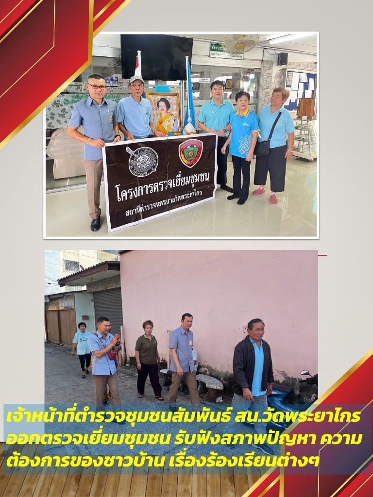 ภายใต้อำนวยการของ พ.ต.อ.วาทิตย์ โรจนไพฑูรย์ ผกก.สน.วัดพระยาไกร นำโดย พ.ต.ท.นิวัฒน์ บรรณสาร รอง ผกก.ป.ฯ สน.วัดพระยาไกร มอบหมายให้ พ.ต.ต.เดชา จำรูญสวัสดิ์ สวป.(ชส.) พร้อมด้วยเจ้าหน้าที่ตำรวจชุมชนสัมพันธ์ สน.วัดพระยาไกร ออกตรวจเยี่ยมชุมชน รับฟังสภาพปัญหา ความต้องการของชาวบ้าน เรื่องร้องเรียนต่างๆ พร้อมกับร่วมกันหารือแนวทางการแก้ไขปัญหายาเสพติด เพื่อหาแนวทางการป้องกันอาชญากรรม สร้างภาคีเครือข่ายในการแจ้งเบาะแสผู้ติดยาเสพติด ประชาสัมพันธ์เตือนภัยออนไลน์ และให้ความรู้และวิธีการป้องกันฝุ่นละออง PM 2.5 ณ ชุมชนบางอุทิศ แขวงวัดพระยาไกร เขตบางคอแหลม กทม.