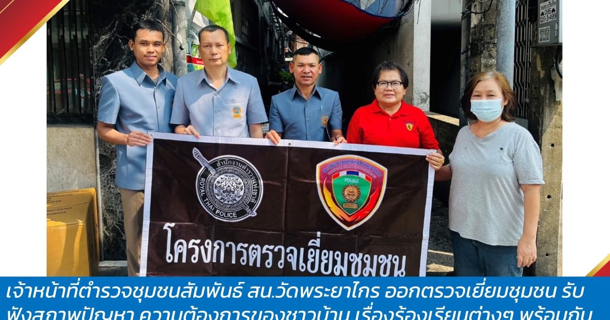 มอบหมายให้ พ.ต.ต.เดชา จำรูญสวัสดิ์ สวป.(ชส.) พร้อมด้วยเจ้าหน้าที่ตำรวจชุมชนสัมพันธ์ สน.วัดพระยาไกร ออกตรวจเยี่ยมชุมชน รับฟังสภาพปัญหา ความต้องการของชาวบ้าน เรื่องร้องเรียนต่างๆ พร้อมกับร่วมกันหารือแนวทางการแก้ไขปัญหายาเสพติด เพื่อหาแนวทางการป้องกันอาชญากรรม สร้างภาคีเครือข่ายในการแจ้งเบาะแสผู้ติดยาเสพติด ประชาสัมพันธ์เตือนภัยออนไลน์ และให้ความรู้และวิธีการป้องกันฝุ่นละออง PM 2.5