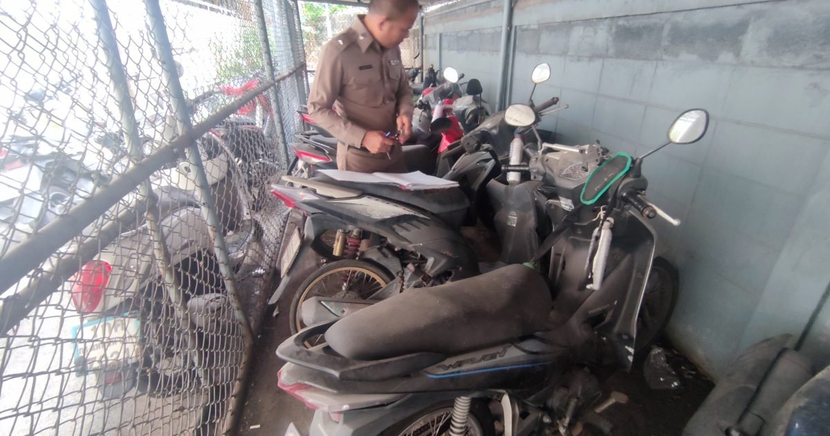 เจ้าหน้าที่เก็บรักษาของกลางในคดีอาญา นำรถ จยย. ของกลาง เก็บในสถานที่เก็บทรัพย์สินของกลาง มีความมั่นคงแข็งแรงและปลอดภัย