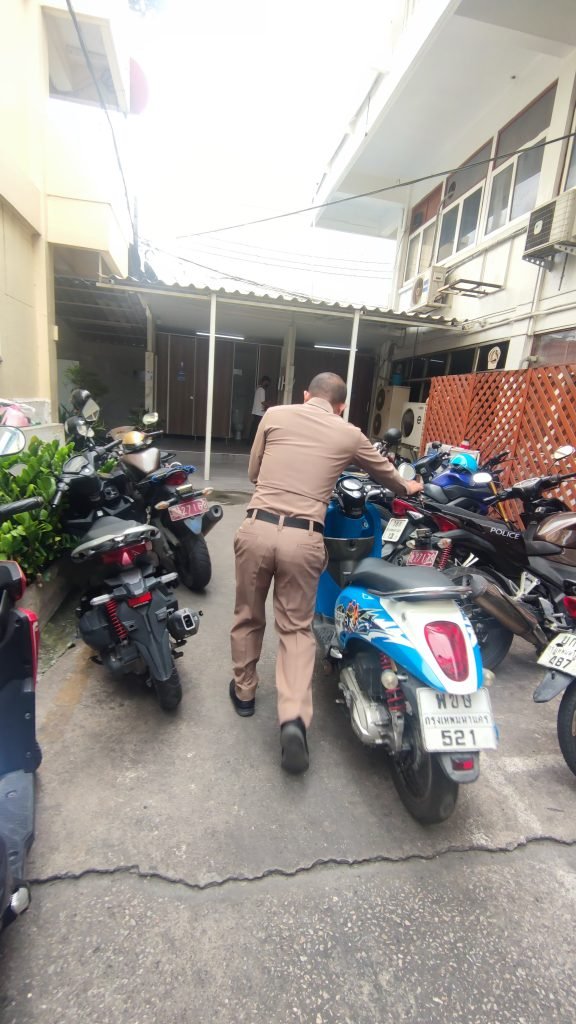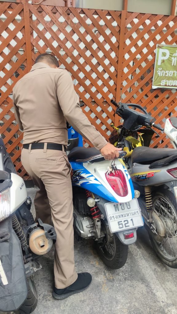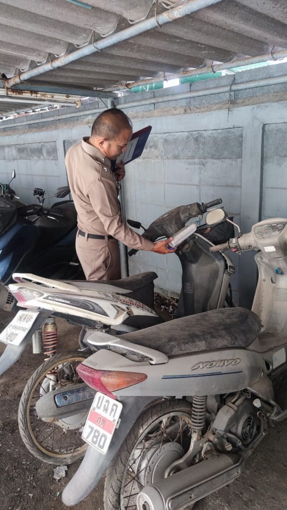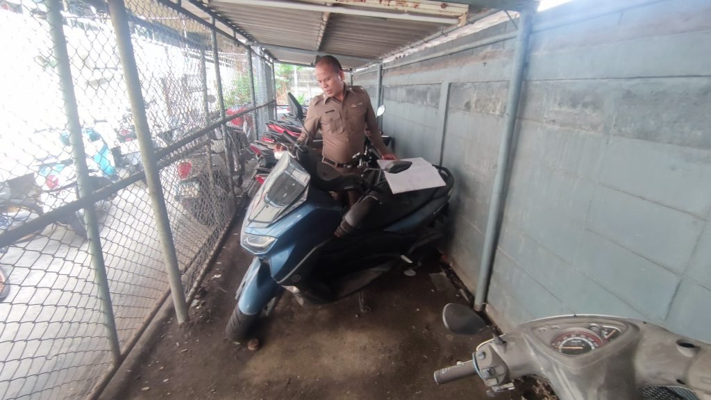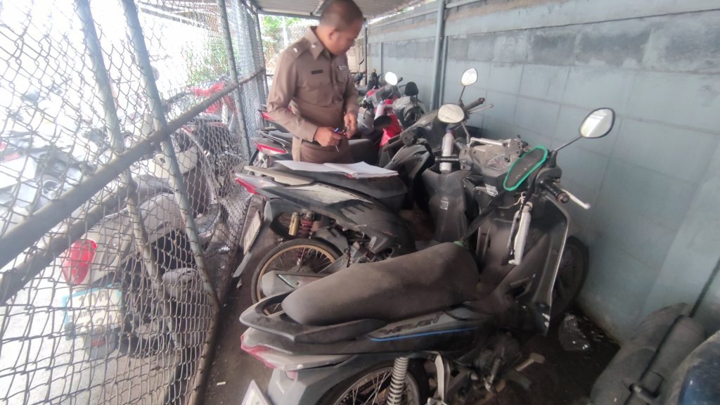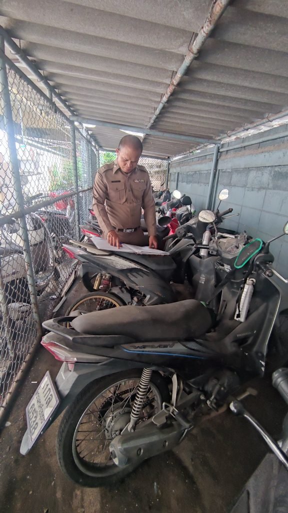 เจ้าหน้าที่เก็บรักษาของกลางในคดีอาญา นำรถ จยย. ของกลาง เก็บในสถานที่เก็บทรัพย์สินของกลาง มีความมั่นคงแข็งแรงและปลอดภัย