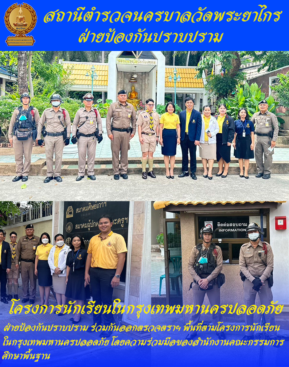 ฝ่ายป้องกันปราบปราม สน.วัดพระยาไกร ออกตรวจตราฯ ตามโครงการนักเรียนในกรุงเทพมหานครปลอดภัย เมื่อวันจั