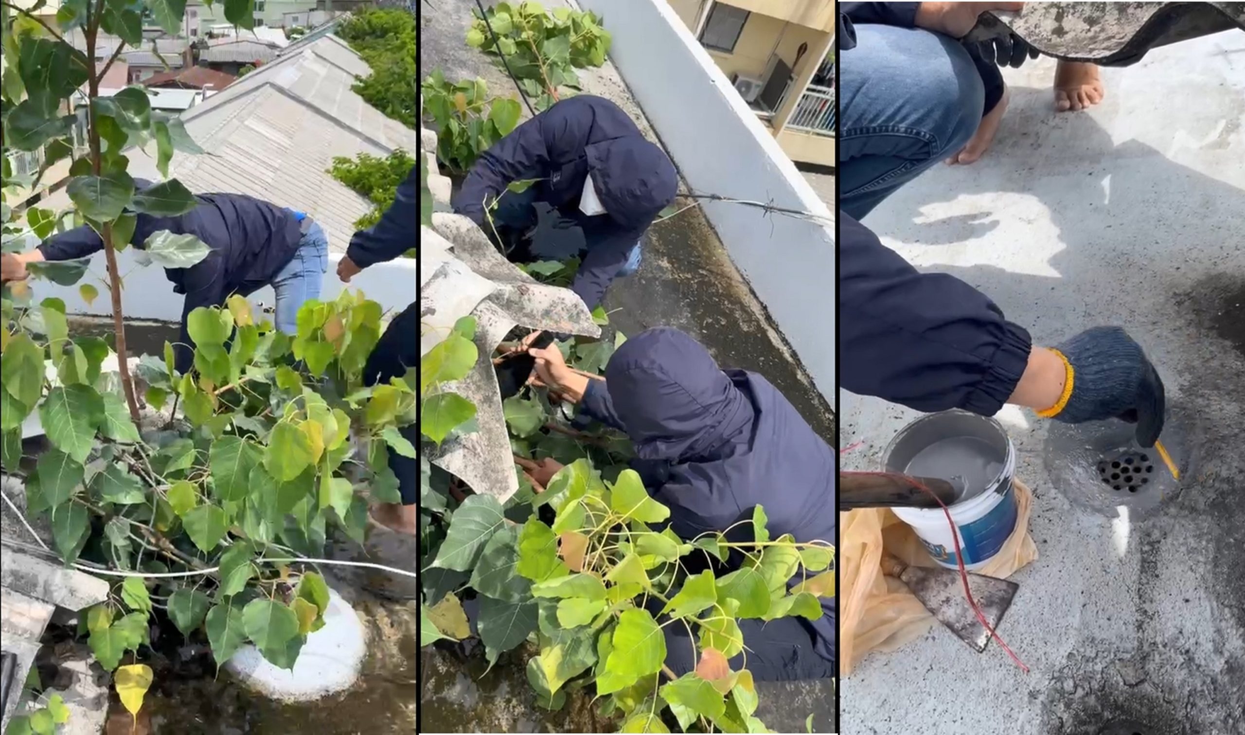 ฝ่ายอำนวยการ สน.วัดพระยาไกร ดำเนินการกำจัดวัชพืช และทาน้ำยากันซึม บนหลังคาอาคารที่ทำการ