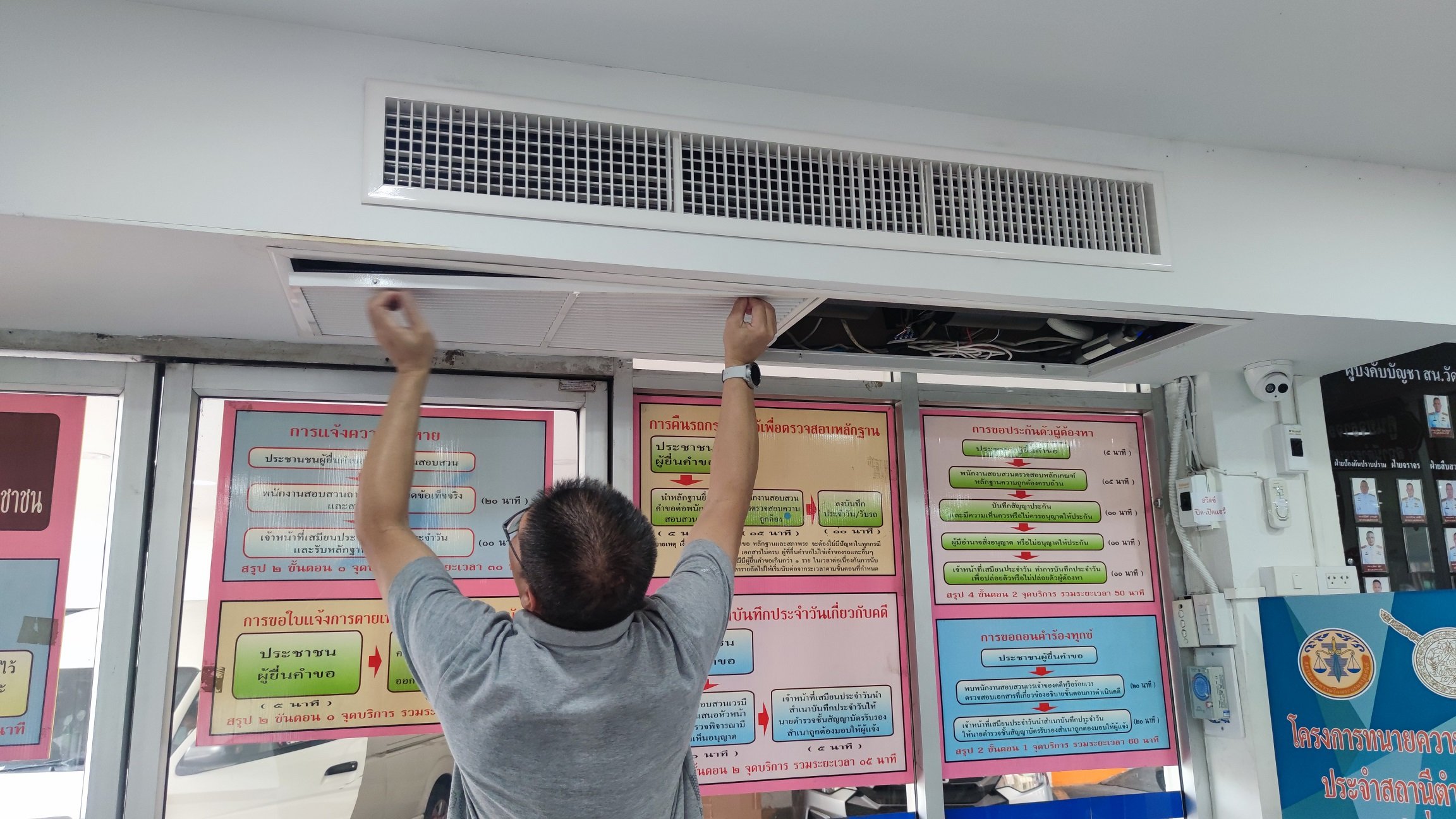 ฝ่ายอำนวยการ สน.วัดพระยาไกร ดำเนินการตรวจสอบเครื่องปรับอากาศ ห้องบริการประชาชน มีน้ำหยด