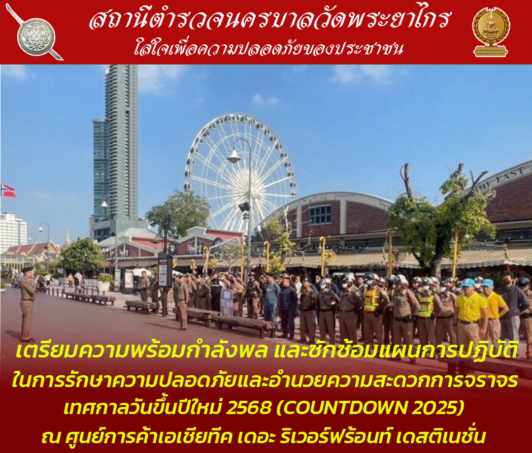 การเตรียมตรวจสอบความพร้อมกำลังพล และซักซ้อมแผนการปฏิบัติ ในการรักษาความปลอดภัยและอำนวยความสะดวกการจราจร เทศกาลวันขึ้นปีใหม่ 2568 (Countdown 2025)