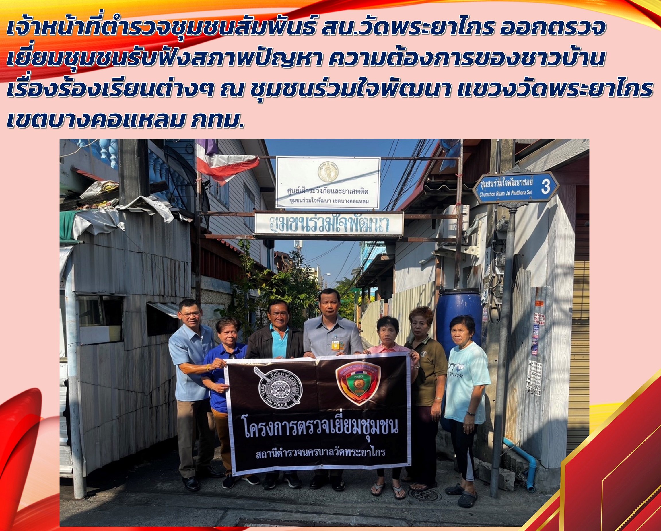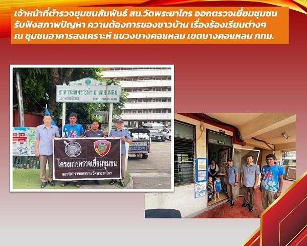 เจ้าหน้าที่ตำรวจชุมชนสัมพันธ์ สน.วัดพระยาไกร ออกตรวจเยี่ยมชุมชน รับฟังสภาพปัญหา ความต้องการของชาวบ้า