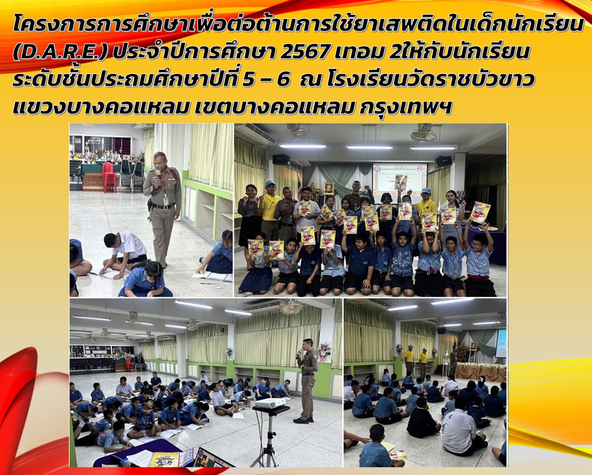 โครงการการศึกษาเพื่อต่อต้านการใช้ยาเสพติดในเด็กนักเรียน (D.A.R.E.) ประจำปีการศึกษา 2567 เทอม 2ให้กับ