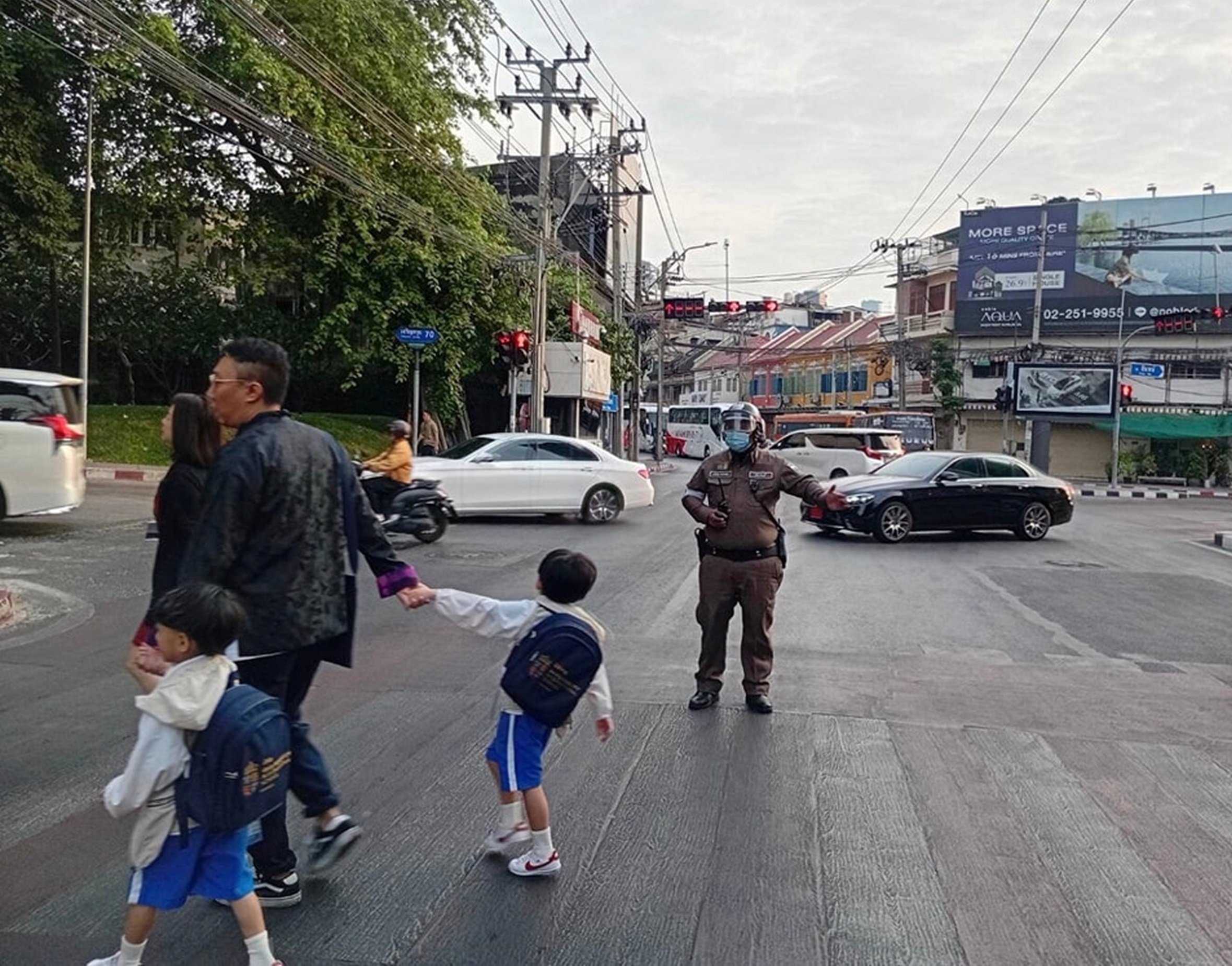 เจ้าหน้าทีตำรวจจราจร สน.วัดพระยาไกร ออกปฏิบัติหน้าที่อำนวยการจราจรบริเวณหน้าโรงเรียน และสถานที่ท่อ