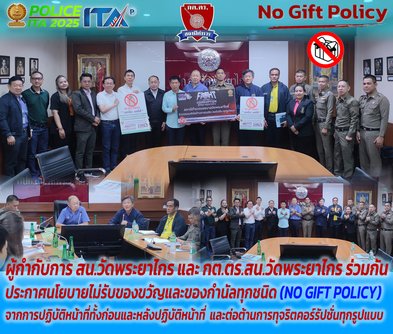 ประกาศนโยบายไม่รับของขวัญและของกำนัลทุกชนิด (No GiftPolicy) จากการปฏิบัติหน้าที่ทั้งก่อนและหลังปฏิบั