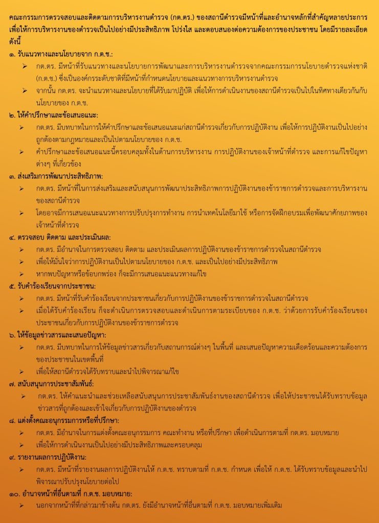บทบาท อำนาจหน้าที่คณะกรรมการตรวจสอบและติดตามการบริหารงานตำรวจ (กต.ตร.) ของสถานีตำรวจ